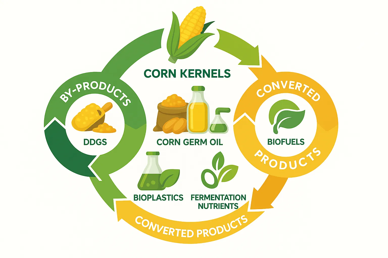 الاستخدام الثانوي للمنتجات الثانوية للذرة يقلل النفايات، ويدعم أهداف خفض الكربون، ويعزز المرونة الاقتصادية من خلال تنويع تدفقات الإيرادات.